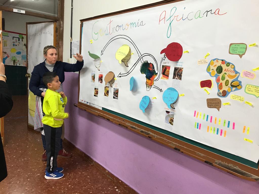 2° Ed. Primaria. Comidas de África donde además de conocer la gastronomía han tenido la oportunidad de degustar alguno de los platos de la tradición gastronómica africana.