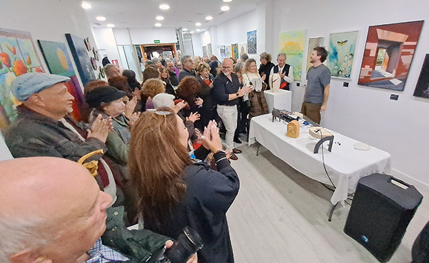 A continuación lo pasaría a Marcos Maya, responsable de la Fundación Omnia que comenzaría agradeciendo a todos los socios y colaborados su participación en esta exposición tan diversa, cuyo montaje ha sido un reto y «que ha quedado muy bonita, la verdad». Seguidamente explicaría que «la Fundación Omnia tiene tres pilares muy importantes que son: desarrollo socio-económico de la zona del Valle, colectivos vulnerables de los cuales se encarga mi compañera Marijose y Cultura y Artes para lo que abrimos este proyecto de galería que viene por parte de nuestro compañero Filippo».