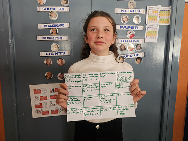 Por fin, pasamos al tema estrella de este escrito. Llegó el día del examen oral. El docente sacará de forma ordenada o aleatoria a los primeros cinco alumnos. Cada uno de ellos procederá a coger una de las 16 tarjetas previamente recortadas para el efecto y las responderán.