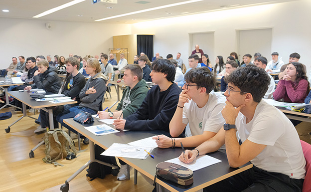 Desde las 9 hasta las 18:30 horas, los estudiantes conocieron los instrumentos y experimentos que se realizan en el CERN y aprenderán a utilizar las herramientas matemáticas y físicas necesarias para observar lo más íntimo de la materia y descubrir sus secretos. Esta iniciativa les otorga la oportunidad de adentrarse en el mundo subatómico con una serie de charlas introductorias sobre física de partículas que actualizan sus conocimientos desde el contacto directo con científicos de primer nivel, que también demuestra que la investigación en física de partículas en nuestra comunidad es muy puntera.