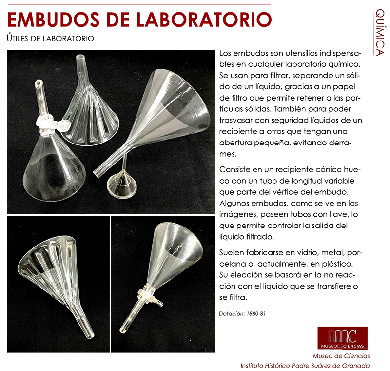 Miércoles lluvioso en Granada pero también de ciencia. José Emilio Padilla, responsable del Museo de Ciencias del Instituto Histórico Padre Suárez nos muestra a estos embudos de laboratorio que hacen una labor indispensable. Fueron adquiridos durante el curso 1880-1881.