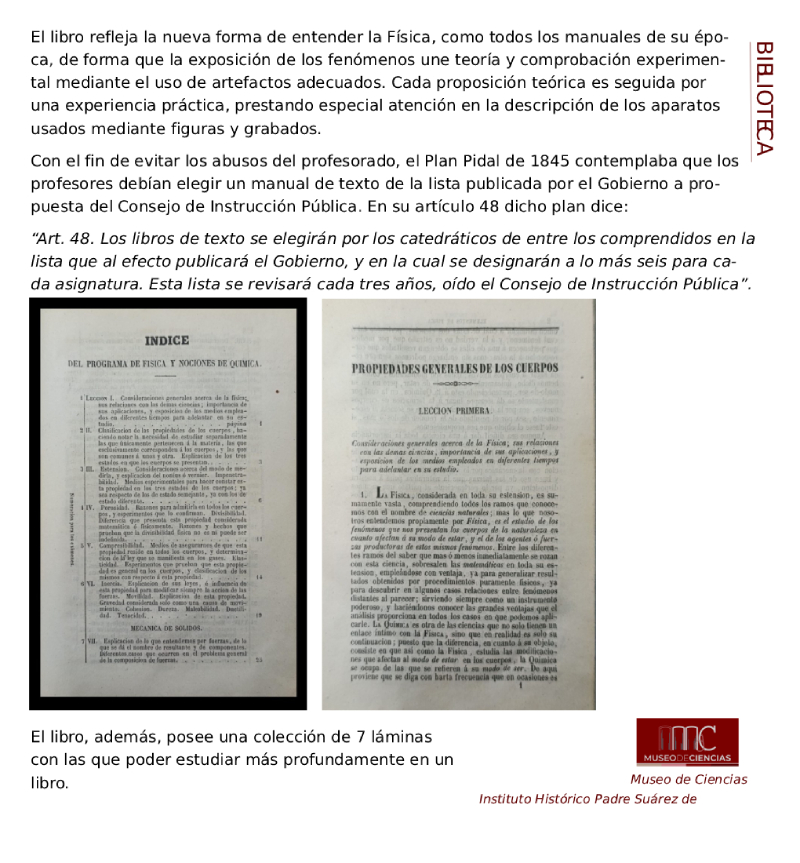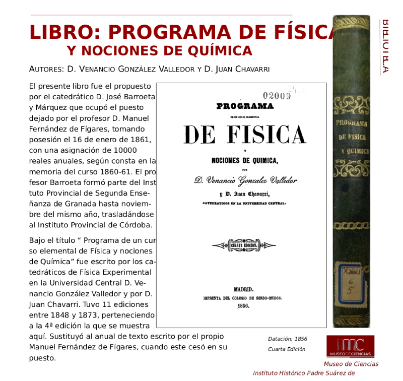El libro que José Emilio Padilla, responsable del Museo de Ciencias del Instituto Histórico Padre Suárez de Granada, nos muestra hoy, estuvo durante un curso como manual de referencia en nuestro instituto.