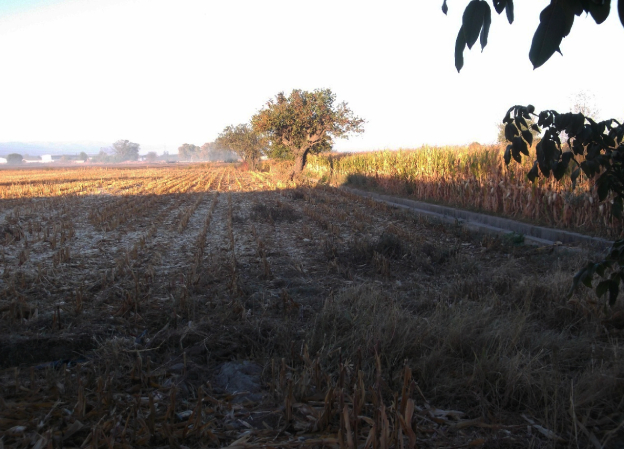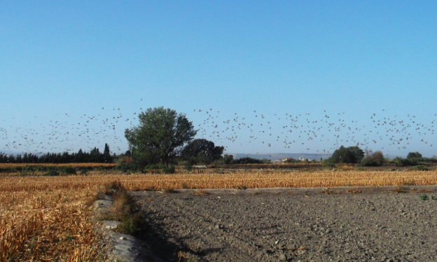 Para no perder el norte, porque todo esto es extraño para mí, he cogido el surco de la izquierda producido por la rodada de un tractor, hasta llegar a un rastrojo de maizal. Al final de este rastrojo de maíz y girando a la izquierda, se encontraban la vivienda de María y Frasco y los secaderos del Morón, vecino de Maracena ya mencionado anteriormente. Aquí he sido sorprendido por cantidad de palomas que me han llenado de regocijo ambiental —a pesar de las complicaciones para llegar al lugar deseado—, tanto, que sólo las he guardado en mis pensamientos.