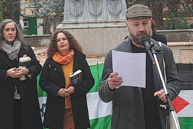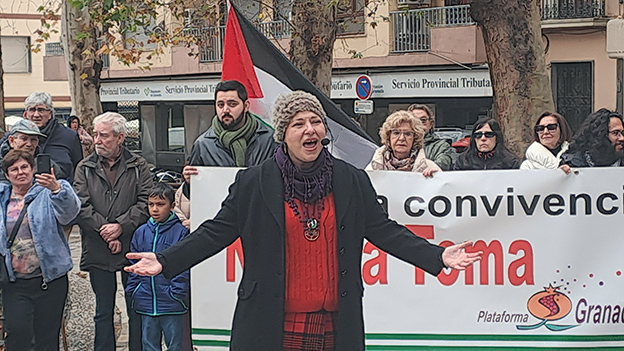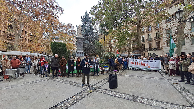 Después se realizaba una lectura de textos de intelectuales que hablaron de la convivencia y contra la Toma, como García Lorca, Francisco Ayala, Antonina Rodrigo, Carlos Cano, Taríq Alí, Mayor Zaragoza, entre otros, que se completaría con una lectura poética de ‘Lorca dijo no a la Toma’, coordinada por Pepa Merlo, en la que intervinieron Javier Gilabert, Marina Tapia, Antonio Serrano y José Manuel Darro, que recordaría al concejal de Cultura, Juan Ramón Ferreira. Por último, Nadi Hindi daba lectura en árabe y después su traducción al castellano de un poema de Mahmud Darwish, en homenaje al pueblo palestino, y otro poema de Hiba Abu.