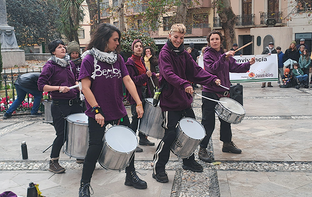 Le seguiría la actuación del grupo femenino de Bembe Batucada y la lectura del manifiesto de la Plataforma por parte de Consuelo Fernández y la intervención de Reynaldo Fernández, quien realizó un completo recorrido por los avatares de esta celebración a lo largo de los siglos y, en especial de los últimos años.