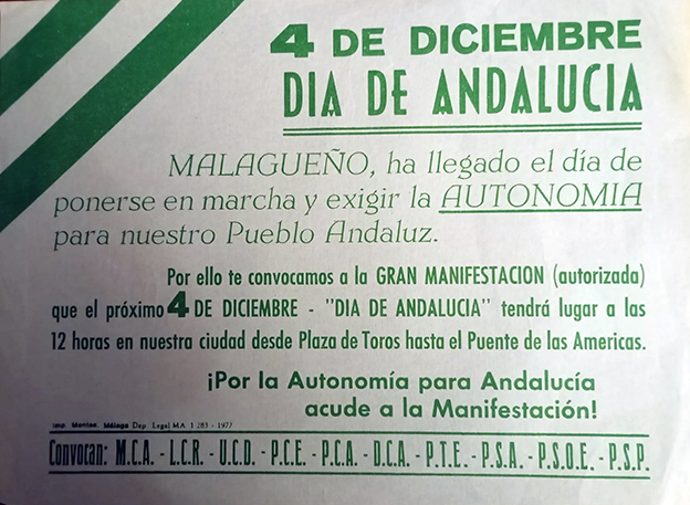 Ese día de diciembre de 1977 empezaron las movilizaciones masivas por parte de los andaluces que reclamaban autonomía, con más de un millón y medio de manifestantes repartidos por diferentes lugares de España. Ese día ocurrió algo que marcó la historia andaluza, y que por desgracia tiene poco reconocimiento hoy en día. En Málaga, en plena manifestación, los policías sacaron armas para alejar a los manifestantes, pero con la «intención de disparar al aire», ya que aquello era un acto pacífico. Sin embargo, hubo algunos heridos y una muerte: Manuel José García Caparrós, un joven de 19 años que solo buscaba defender la bandera de su tierra.