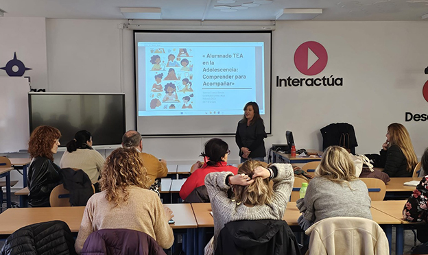 Por último, el taller de secundaria, desarrollado por Vanesa Franco, orientadora de Instituto, analizó los retos a nivel de centro, de aula y de alumnado para dar respuesta a las características evolutivas del alumnado TEA adolescente. Ofreció una amplia diversidad de ajustes metodológicos, así como estragegias preventivas ante posibles conductas retadoras.