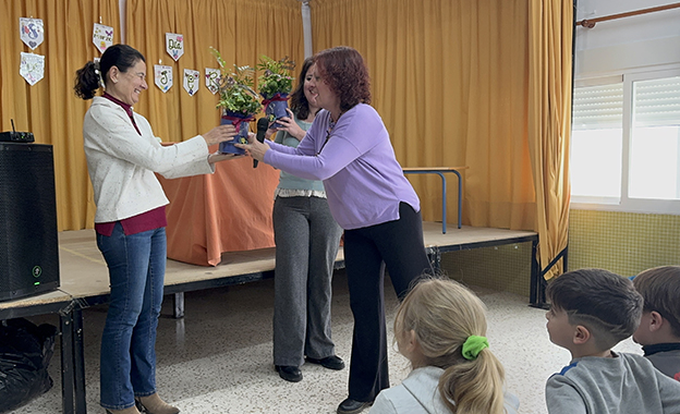 Tras el coloquio, todos los oyentes y participantes posaron junto a las invitadas en una fotografía de familia. El centro, de la mano de su directora María José Ocaña Fernández, agradeció a las ponentes su valiosa aportación y les hizo entrega de un pequeño obsequio: un ramo de flores y un llavero elaborado con impresora 3D por el alumnado del centro, especialmente por el alumnado de ESO junto a su profesora Eva Burgos. Este detalle no solo simbolizaba el agradecimiento y la inspiración que ambas mujeres habían transmitido, sino que también se quiso que fuera un recuerdo para que nunca olviden nuestro colegio y nuestra comunidad educativa, mostrando lo agradecidos que estamos por su presencia en nuestro pequeño centro.