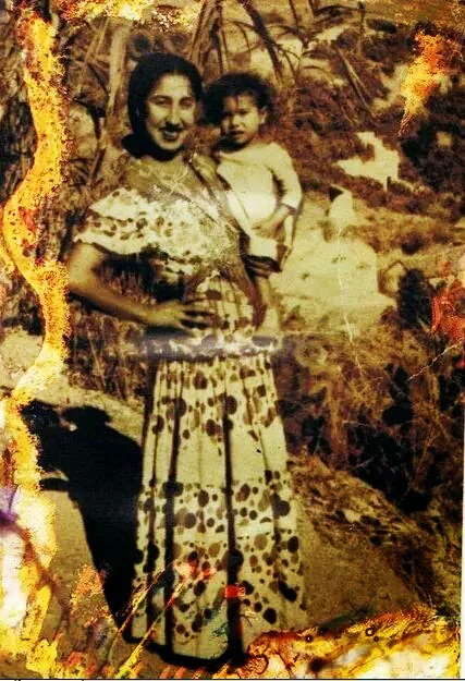 Junto a ella, su hija, Antonia. Antonia Heredia «la gallina». No sabemos cómo pintarla ¿Cómo se retrata un personaje de la realeza? Si hacerlo cuando Vicente Escudero la escogió, de mozuela, para su gira norteamericana junto a otras gitanas del Camino allá por los años 30, si como intérprete en la película María de la O junto a Carmen Amaya, si lavando la ropa en el río junto a su hijo pequeño.