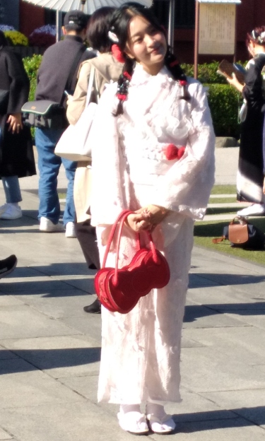 De nuevo en movimiento, una pequeña panorámica del Central Park [Shinjuku Egoen National Garden] con árboles majestuosos y los ginckos dejando caer su otoñal ropaje para seguir hasta el concurrido Santuario Meiji Jingu y continuar con el de Senso-ji con un gigantesco farolillo rojo, a modo de bienvenida, estamos ante el Templo más antiguo de la capital nipona y en donde nos dieron una hora de asueto para disfrutar de un ambientes festivo y cientos de kimonos, en algunos casos, familias enteras de hasta cuatro generaciones que acudían a los templos del lugar; el sintoísta más modesto, quedaba casi anulado ante la suntuosidad de las instalaciones budistas que ya muestran su espectacularidad con el Kaminarichon o Puerta del Trueno, estamos accediendo a un inmenso sector donde se conservan con solera los tradicionales paisajes urbanos que a veces sólo vemos en el séptimo arte.