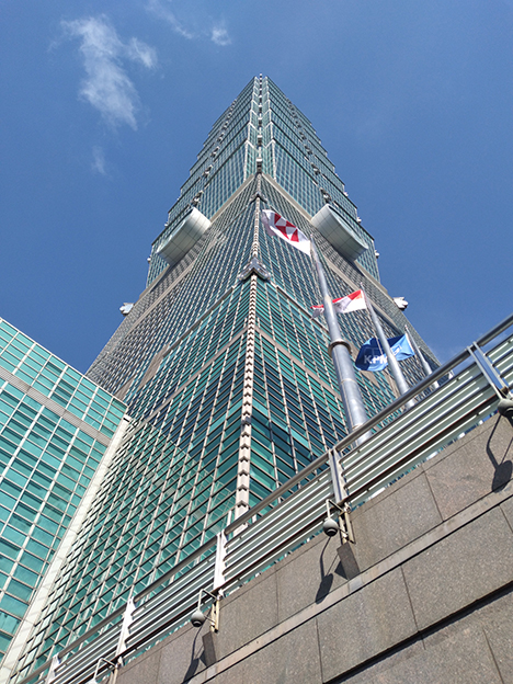 El edificio se inició en 1991 y se inauguraba el 14 de noviembre de 2005: atrás quedaron los numerosos retos que tuvieron que hacer frente los que lo proyectaron y los que lo construyeron [japoneses y coreanos], entre ellos el de los terremotos y los huracanes o monzones que frecuentemente azotan la isla o por la posición que ocupa en las placas tectónicas que no descansan y están dando constantes sustos a los taiwaneses. Estamos ante un edificio majestuoso, que sobresale, inhiesto y desafiante, en la moderna urbe de Taipei. En su momento [2004-2010] fue el más alto del mundo, con sus famosos 101 pisos [+5 subterráneos] que lo identifican y alcanza los 508 metros de altura. En la actualidad está en la undécima posición del ránking de estructuras más elevadas entre los rascacielos del orbe.