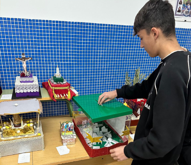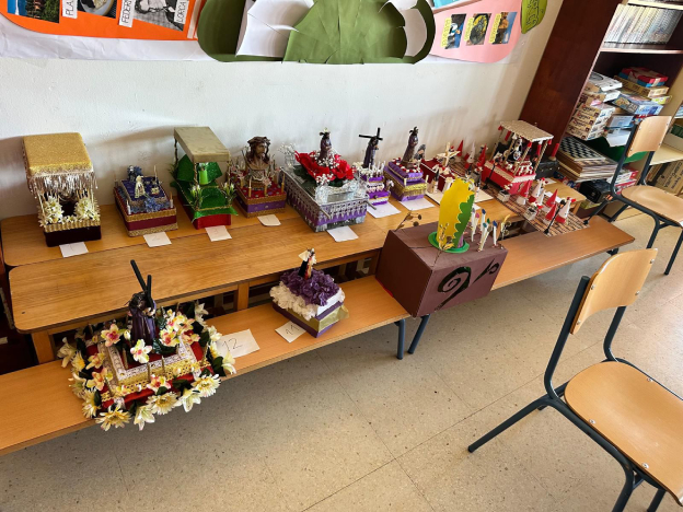 La propuesta consistía en que los alumnos elaboraran en casa, junto a sus familiares, pequeñas representaciones de pasos procesionales o escenas relacionadas con la Semana Santa. Aprovechando los días del puente, muchas familias se implicaron en esta actividad, convirtiéndola en una excelente oportunidad para compartir tiempo juntos y conocer mejor el significado de estas celebraciones.