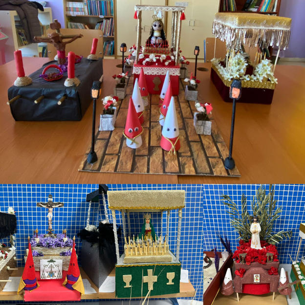 Con motivo del inicio de la Cuaresma, quise aprovechar el puente de Andalucía para proponer a los alumnos una actividad diferente. Así nació un Concurso de Pasos de Semana Santa, en el que han participado estudiantes desde Educación Infantil hasta 1.º y 2.º de ESO. El objetivo era acercar a los más pequeños a una de las tradiciones más arraigadas de nuestra cultura y de nuestra fe, al mismo tiempo que se fomentaba la creatividad y la participación de las familias.