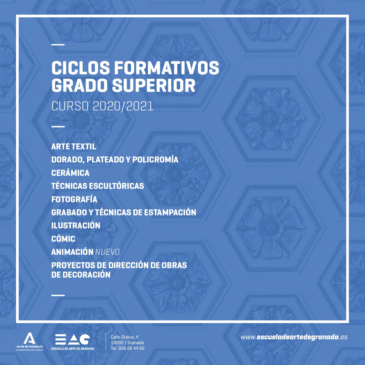 OFERTA FORMATIVA DE LA ESCUELA DE ARTE DE GRANADA (GRADO SUPERIOR Y MEDIO)
