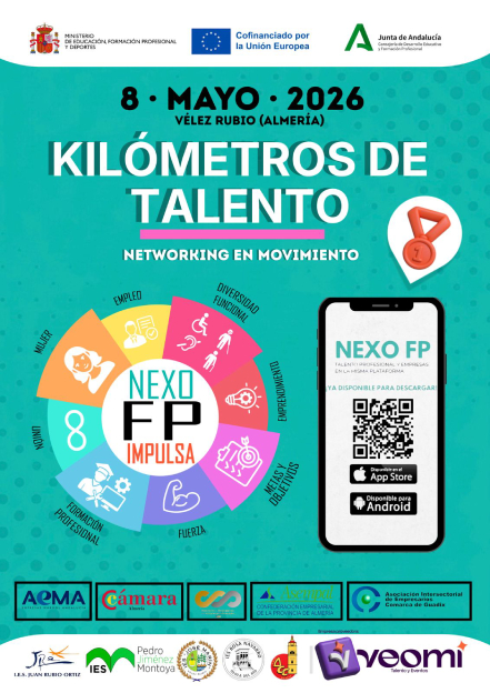Sin embargo, «Nexo FP Impulsa» va más allá de la pantalla.. El próximo 8 de mayo, las calles de Vélez-Rubio no sólo acogerán una prueba deportiva, sino el nacimiento de una nueva forma de entender la relación entre educación y empresa. El IES José Marín, como centro participante del proyecto, organiza la jornada “El Networking en Movimiento: Kilómetros de Talento”, tratándose de un evento donde alumnado de FP de los cinco centros realizará una carrera por las calles del municipio para dar a conocer su APP. Tras la carrera, la jornada culminará en el encuentro “NEXO Real: Espacio de Sinergia Empresarial”, que se celebrará en el IES José Marín; un foro donde se espera la asistencia de autoridades locales, asociaciones empresariales, empresarios, alumnado y profesorado, creando un espacio de sinergias conectando así el mundo empresarial con la Formación Profesional.