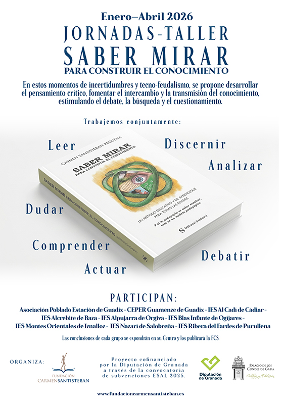 A través de esta experiencia, la Fundación Carmen Santisteban, que, entre sus fines, según sus Estatutos (Cap. II), están “promover las artes, la educación y la cultura…. “generar instrumentos y actividades que promuevan la integración social y que fomenten la educación en valores…” reclama un saber mirar que lleve a la reflexión y al diálogo.