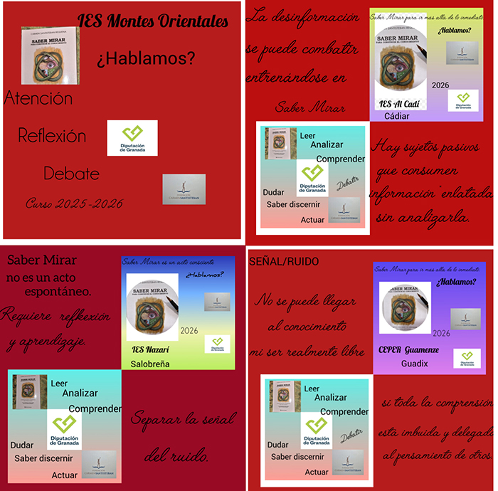La flexibilidad se ha impuesto en cómo y cuándo abordar los temas en cada centro. Los participantes, además de ser muy diferentes en edad y otros factores psico-sociales, todos ellos coinciden, como no podía ser de otra manera, en mezclar la racionalidad con las “creencias” y las emociones. Esto se va devanando en el debate. El debate, es imprescindible. En algunos centros hemos discutido ampliamente sobre las diferencias entre señal y ruido, identificando el ruido que nos desvía la atención del foco, de aquello a lo que deberíamos atender. En otros, el foco se ha dirigido más hacia el lenguaje, las palabras y las frases, como expresión fidedigna de los pensamientos, de los mensajes, con su sentido en el texto y en el contexto. Sin esa premisa, sin un lenguaje preciso, no se puede avanzar en el entendimiento y construcción del conocimiento. No obstante, incidiendo más o menos, según el desarrollo de la actividad, en todos los centros se tratan todos los temas cruciales en el “saber mirar” a los que nos hemos referido en párrafos anteriores.