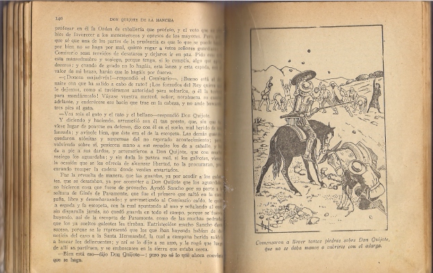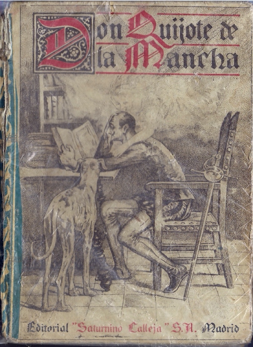 Esto le costaría a mi bisabuelo, Leandro García-Fresneda, que fue alcalde pedáneo del Cortijo del Cura (Galera). En fin, ni que decir tiene que guardo este valioso ejemplar de DonQuijote como oro en paño (cuatro generaciones lo hemos conservado) y, en sus amarillentas páginas, han quedado escritas a lápiz algunas frases de mis padres cuando andaban pelando la pava a mediados de los años cuarenta, del pasado siglo. En el prólogo del libro, el editor Calleja aconseja a los señores profesores de Primera Enseñanza: “La lectura del Quijote en las escuelas contribuirá, seguramente, a levantar en España la afición a lo clásico, y con ese propósito hacemos esta edición dedicada a los niños”. De vez en cuando me gusta aspirar ese olor rancio de sus centenarias páginas, así como contemplar las amenas ilustraciones, que vienen firmadas por Ángel.
