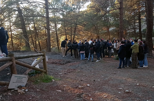 Por otro lado, y como se ha referido más arriba, el 17 de noviembre, unos días antes de la visita a Viznar por parte del profesorado, el alumnado Historia de España (2º de bachillerato) y el de la materia Taller de Historia de España del siglo XX (optativa de 4º de ESO) visitó las labores de excavación y exhumación de las fosas del Barranco de Víznar, dirigidas por el equipo multidisciplinar de la Universidad de Granada, que como siempre tan atentamente nos acogió y recibió. Contaron, además, con la presencia de varios familiares de víctimas, que más de 80 años después siguen esperando para recuperar los restos de sus familiares en este barranco.