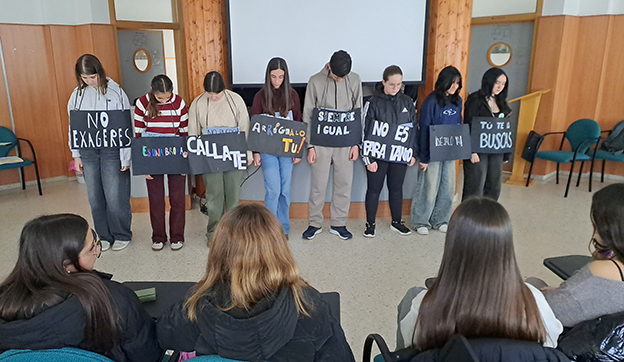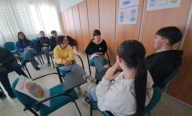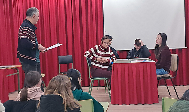 Así mismo los alumnos lo tienen muy claro pues cuando la profesora Amanda Sánchez les preguntó palabras relacionadas con mediación se sucedieron las respuestas: ayuda, respeto, comprensión, asertividad, empatía, confidencialidad, comunicación, escucha, entre otras. «Bueno, pues todas esas palabras, algunas de ellas son valores y otras son emociones, están muy relacionadas con la mediación y con algo que engloba la mediación, como es la cultura de paz. Nosotros estamos aquí porque creemos que la solución de los conflictos tiene que venir de la mano del diálogo», añadiría la docente antes de dar la enhorabuena al equipo de profesores por su compromiso con este proyecto y por creer «que otro mundo es posible». Convencimiento que han sabido trasladar a su alumnado como demostraban Nazareth, Carlos y Daniel, estudiantes de 3º de la ESO del IES Alhendín con distintos grados de experiencia en el programa pues los dos primeros llevan dos años y el tercero se ha estrenado este curso. En cualquier caso coinciden en que les ha servido para aprender a solucionar conflictos dentro del instituto y también en el ámbito familiar y con su pandilla de amigos. Igualmente coincidieron en hacer una valoración positiva de la jornada pues les había permitido hacer nuevos amigos y saber cómo se hace una mediación con diferentes personas que no conocían con anterioridad.