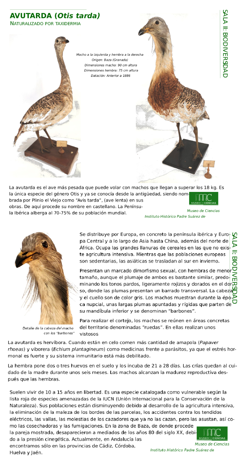 Avutardas. Museo de Ciencias Instituto Histórico Padre Suárez