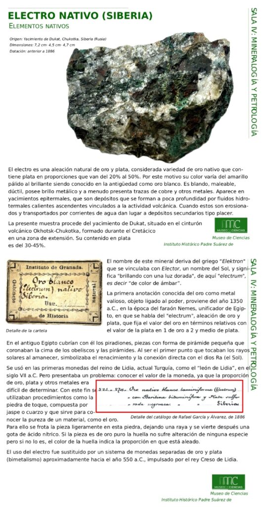 Los ‘tesoros’ de las salas de biología y geología del Museo Suárez (92): Electro (Siberia)