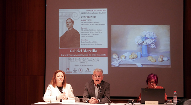 La charla forma parte del Ciclo de personalidades del Ateneo histórico que el actual Ateneo está dedicando a la celebración del centenario de su fundación y que coordinan Rosa González de Patto y Mª del Mar Villafranca Jiménez. Gabriel Morcillo formó parte de la primera Junta Directiva de este Ateneo de la “Edad de plata” como vocal de la Sección de Artes Plásticas junto a Leopoldo Torres Balbás, arquitecto-conservador de la Alhambra, Sección que presidía otro gran pintor granadino, José Mª Rodríguez-Acosta.