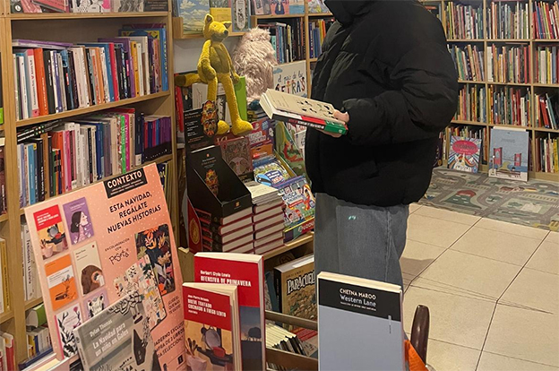 Allí, entre el café caliente y los libros que piden ser abiertos, hicimos una elección compartida. Un grito por la infancia de Gaza (Editorial Now Books). No fue una compra: fue un acuerdo silencioso. En el lugar, contrastaba la cercanía de los que allí habitaban el espacio con la reivindicación de los libros que copaban sus escaparates.