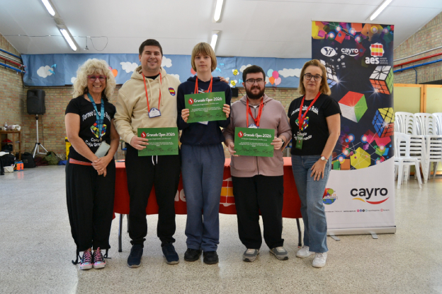 En concreto, durante toda la jornada del sábado, de 9 a 20:30 h y la mañana del domingo que culminó en torno al mediodía con la final y la entrega de premios, este centro acogió la competición oficial organizada por la Asociación Española de Speedcubing, el Granada Open 2026, en la que participaron 80 personas de distintas edades, en modalidades 3x3x3, 2x2x2, pyraminx, skewb, clock, …
