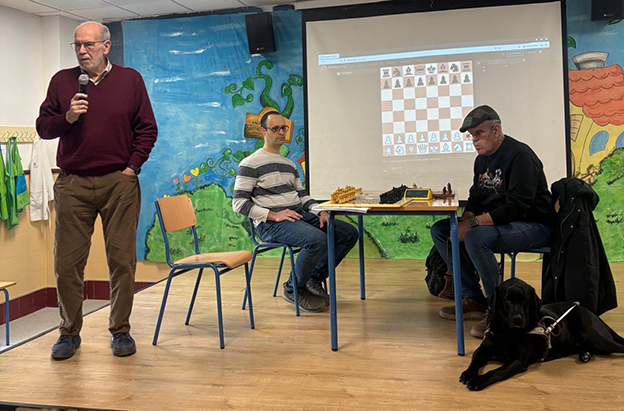 Una mañana extraordinaria con Antonio Fernández Zúñiga, jugador ciego, que participaba en una serie de actividades de ajedrez inclusivo en el CEIP Inmaculada de Triunfo, el jueves, 4 de marzo de 2026. El ajedrez es…