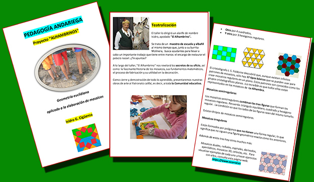 Es nuestra intención publicar aquí, en IDEAL en Clase y en sucesivos capítulos, el libreto explicativo que preparamos para presentar nuestro taller al alumnado de la comarca. Un taller que parte de la arcilla recogida en los alrededores del centro al que acudimos y que obtiene como resultado mosaicos inspirados en los modelos más significativos que podemos apreciar en pavimentos, cerramientos, edificios mudéjares prendas de vestir de nuestro entorno, etc. La Alhambra también es un referente muy importante. De ahí el nombre que damos a nuestras teselas: alhambrinos.