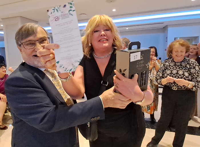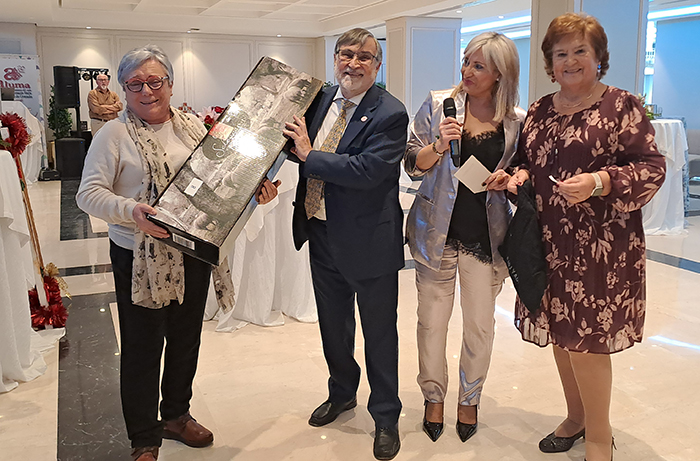 Al finalizar el almuerzo se procedió al tradicional sorteo de regalos que este año contó con una excepcional presentadora, Belén García Rodríguez, de Radio Albolote. Obsequios donados por los patrocinadores, en esta ocasión por Loalba Joyeros, Agencia de Viajes B Travel, Laboratorio AB7 Lab, el propio Hotel y Laura Hispán que donó un ejemplar de su poemario. Para terminar, música de los 70, 80 y 90 a cargo de JAguilar Music que pondría la guinda en torno a las 18 horas. De esta forma concluía esta comida navideña en la que de nuevo se puso de manifiesto que los estudiantes del APFA, con cuyo director Juan Antonio Maldonado compartimos mesa una vez más, junto con otros profesores de estos estudiantes séniors: María del Mar González Hevia, José María Roa, Rafael Pérez Gómez y Francisco Valle, que tienen muy claro que hay que darle vida a los años y no solo añadir años a la vida.
