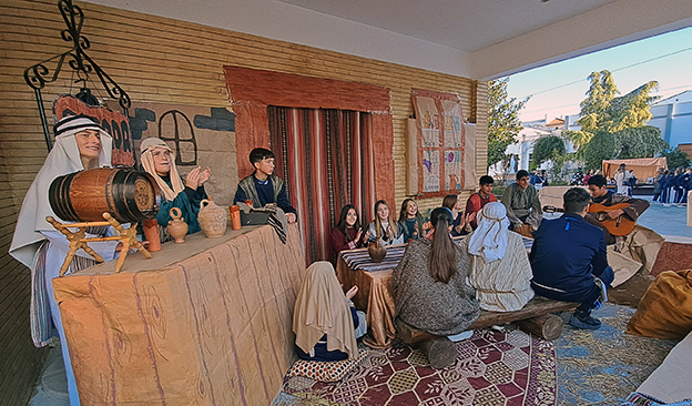 Además tuvimos la enorme suerte de que el profesor de Geografía e Historia y miembro del equipo directivo, Daniel Malmierca Sánchez, se convirtiera en cicerone y ayudante periodista y nos fuera comentando y haciendo algunas pequeñas entrevistas al tiempo que íbamos recorriendo las distintas escenas bíblicas. Por él supimos que la idea de montar este Belén lo vienen haciendo en años alternos desde el año de la pandemia (2020) y que en el mismo participan todos los alumnos del colegio, o sea casi 700 alumnos, repartidos en dos turnos ya que se muestra en horario de mañana y también de tarde durante las jornadas del miércoles 17 y el jueves 18 de diciembre para que nadie de la comunidad educativa de este centro y de la localidad de Santa Fe se quede sin verlo.