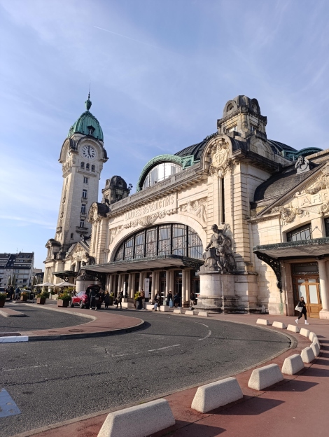 Nuestro tren a Limoges partió con puntualidad y llegamos a nuestro destino a las 16:52 horas, tal y como estaba previsto. En la estación nos esperaba Élodie Labarussias, profesora de español en el Lycee Gay-Lussac. ¡Qué cariñosa y apañada es! Desde el primer momento nos acompañó hasta el final de nuestra estancia. Nada más salir de la estación, al alejarnos, nos invitó a darnos la vuelta para contemplarla.