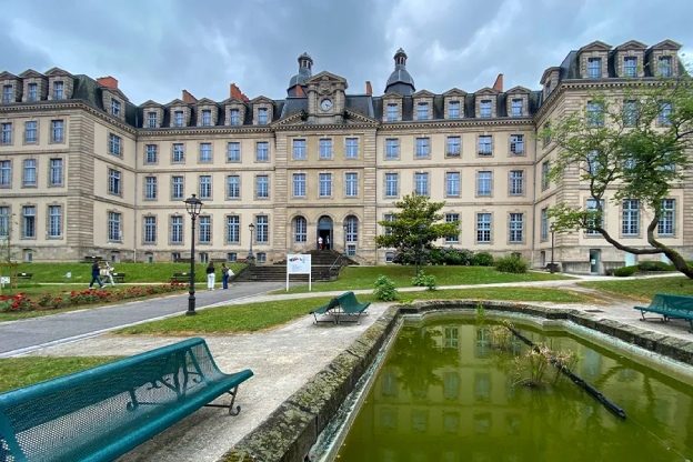 Tras registrarnos en el hotel nos dirigimos con ilusión al instituto francés. Estaba cerca, a menos de quince minutos a pie, paseo que nos permitió disfrutar de la belleza de las calles de Limoges. De pronto, Ëlodie nos muestra el lycée: ¡qué bonito era! Al estilo de los edificios parisinos, ya provoca admiración con solo ver su fachada y los jardines que lo rodeaban. Una vez dentro pudimos comprobar que ha sido rehabilitado recientemente, adaptándolo a las necesidades educativas actuales. Tras conocer a las profesoras que también van a participar en nuestro futuro Erasmus +, Pauline Delhoume y Nathalie Lacorre-Chuette, profesoras de Biología y de Física y Química respectivamente, nos invitaron a participar de la cena de despedida de otro intercambio realizado con el instituto histórico de Soria. Fue una cena muy amena ya que, bajo una buena comida francesa, empezamos a conocernos.