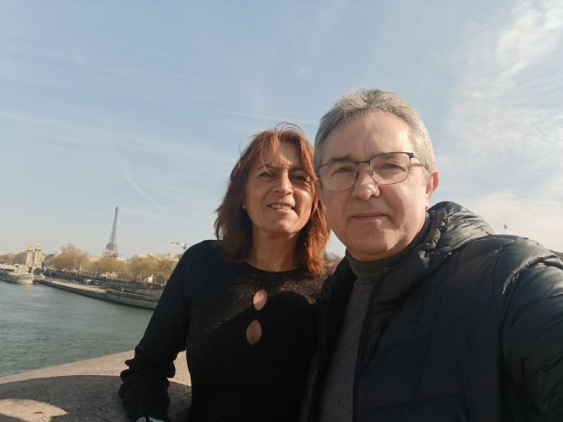Nos quedaba la mañana libre del viernes, antes de volar hacia Málaga y esta vez, dimos un paseo a orillas del Sena. Hizo una mañana estupenda. París está preciosa aunque llueva. Con la torre Eiffel a lo lejos nos dirigimos hacia ella sin poder evitar fotografiarnos con este emblema mundial. Recordamos a nuestra leyenda Rafa Nadal, y nos hicimos las fotos pertinentes para emularlo con una gran diferencia: sus 14 Roland Garros se fotografiaron sin público, solo el trofeo en manos del gran tenista y la torre Eiffel al fondo. En nuestro caso, más gente no podía haber.